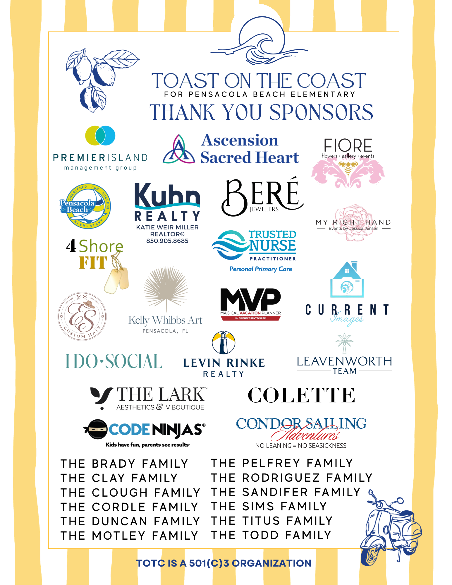 Toast on the Coast: Riviera Soirée would not be possible without the incredible businesses, families, and community partners who believe in the future of Pensacola Beach Elementary School.